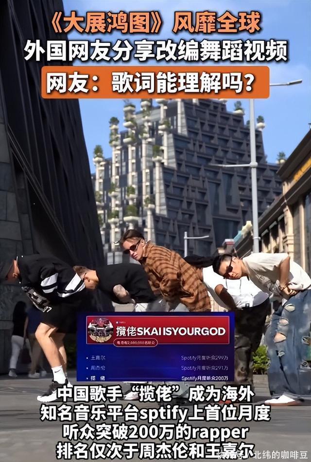 《大展鸿图》这首歌去年底在抖音上突然火起来,开头那句“大展鸿图”被各种开箱视频和逆袭故事反复使用,让人听着容易上头,记起来也快,到了六月它直接冲进音乐平台榜单前三名,连周杰伦的歌都压不住,有人查过数据发现八月在Spotify上月听众突破五百万,比林俊杰同期单曲还高,它没有靠公司砸钱推广,也没有请明星带节奏,纯粹靠着网友自己剪辑视频、分享片段,就这样慢慢滚雪球变成了爆款。