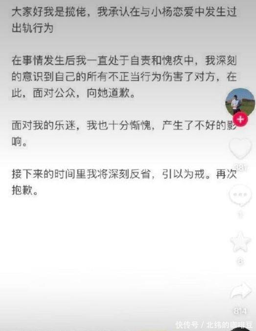 结果今年11月25日突然冒出大量匿名爆料,说他私下联系女粉丝约开房,不止一个女生有聊天记录和证人,前女友也站出来曝光,晒出三年恋爱期间他出轨的证据,连语音都有录音,他只发了一封道歉信,内容很敷衍,没有承认错误,只说“对不起让大家失望”。