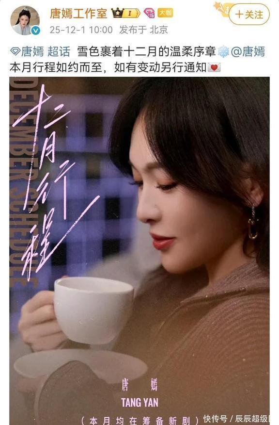 其实粉丝的气愤也不是没有理由,但要说唐嫣“没上进心”,这话可就有点不公平了。工作室12月1日发的行程安排虽然没列出具体时间,但写得清清楚楚“整个12月都在忙新剧的筹备”,懂行的人都知道,这可不是随便搞搞的——每天都得花时间研究剧本。深化角色和导演的讨论,还要不断试衣服、定造型,光是弄清楚一个复杂角色就得耗个十天半个月的。