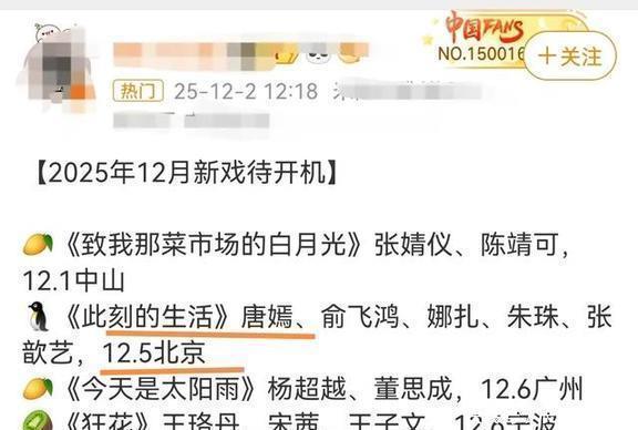 有意思的是,唐嫣工作室那天其实就发了行程图回应,只是没直接说要筹备的新剧就是《此刻的生活》。后来微博一爆料,大家才清楚具体是哪个项目。这波“先疑惑再搞明白”的操作,搞得不少路人糊里糊涂的,也让这部还没开拍的新剧一下子成了大家瞩目的焦点。
