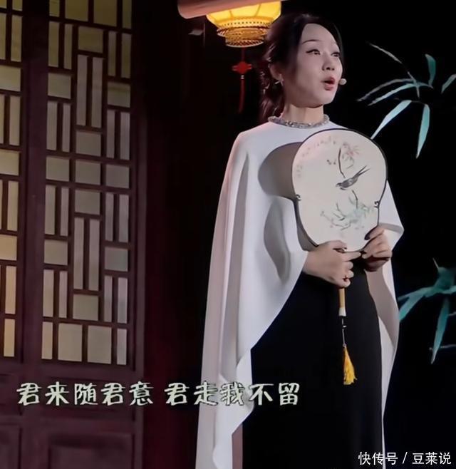 而是手拿圆扇,穿的端庄素雅,眼睛睁的大大的,悠扬婉转的唱起歌!
