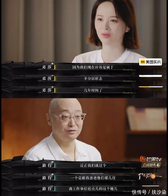 再见爱𱍉开播了,第一对夫妻就是邓莎和路行,上一对的黄圣依和杨子,邓莎和黄圣依还一起上过妈妈是超𱍇,都带着儿子展现妈妈的超强能力,看来这是一种预兆。       要说杨子是表现型人格,处处都爱展示自己是有钱人,那路行就不一样了,他所有言论都太符合商人的气质了,每句话都精准的踩在雷点上。邓莎看路行说的话,眼泪都要止不住了,每天不到评�分钟的沟通,在这一刻两个人都说出了各种的看法。       路行说:女人就是什么都想要,可生活是排除法,不是优选法,女人也要看清这一点,他没有真正考虑过邓莎需要的是什么,只是觉得邓莎在耍脾气,身在福中不知福。       邓莎在事业上升期,直接选择结婚生子,她不是不爱自己的事业,18年以前她的名气也不小,延禧宫略和知否都有她的身影,她也不仅仅是演宫女丫鬟,她有自己真正的角色,都是有血有肉的角色,有头脑有自己的命运,邓莎演的也不错。       她也梦想过能拿个女配角奖或是女演员奖,她不是没有好的作品,而是婚姻让她停止了追梦的机会,等她想继续演戏的时候,现在已经没有机会了,她这是通过这档综艺认清路行,更认清自己。       路行说:邓莎最大的付出就是生了可爱的儿子,照顾儿子和子关系特别好,这是事业不能换来的,可邓莎认为最大的付出不是生儿子,而是为整个家庭的付出,照顾老人照顾孩子打点家里大大小小的事情。       路行不懂邓莎的难,他说大家各司其职,在各自的岗位上做好,就很幸福了,可邓莎做的不是工作,是妈妈,是女儿,这不是做好就行的,她需要老公的理解和支持,结果路行全不看在眼里。       再见爱𱍉开局也是结局,路行的话就是邓莎心口的刺,不离婚也是继续维持分居的状态,邓莎独自带着大麟子生活,江山易改,本性难移,路行今�岁了,他不是中年男人,而是中老年了。他不理解邓莎也是情有可原。       18年参加妈妈是超人的时候,就已经是这样的局面,邓莎坚持𱅃年,她现在参加再见爱人,不是她不能坚持了,而是孩子大了,她也要想想自己,如果能翻红,邓莎还能继续自己的演绎事业,能实现自己的梦想。